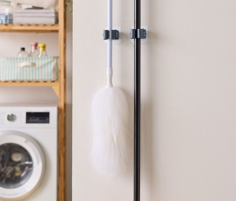- Pour les balais, les serpillières, les parapluies ou les râteaux
