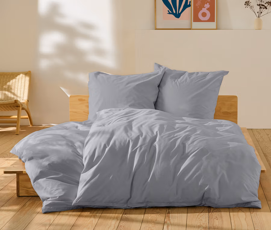 Parure de lit en percale, gris, taille normale