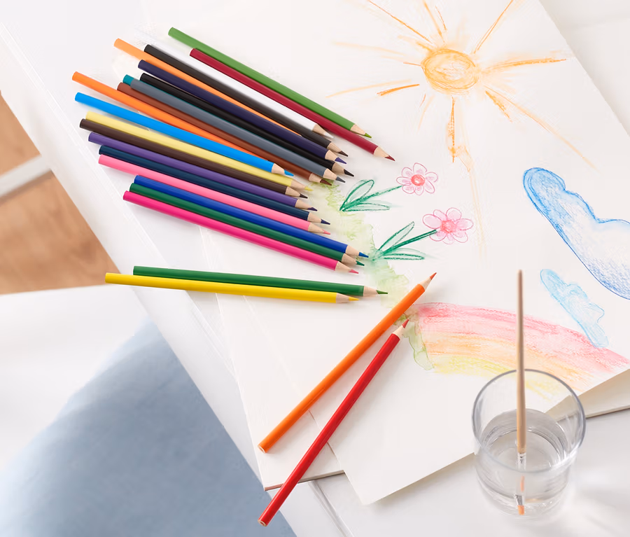 - Crayons et pinceau en bois certifié FSC®