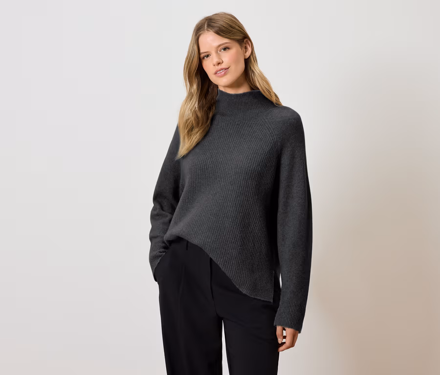 - Bords côtelés aux extrémités des manches et au col
