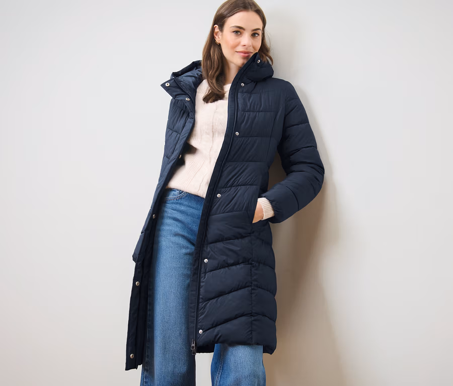 Manteau matelassé à capuche, bleu foncé
