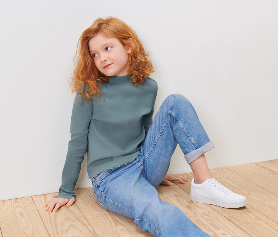 T-shirt côtelé à manches longues pour enfant, vert sauge