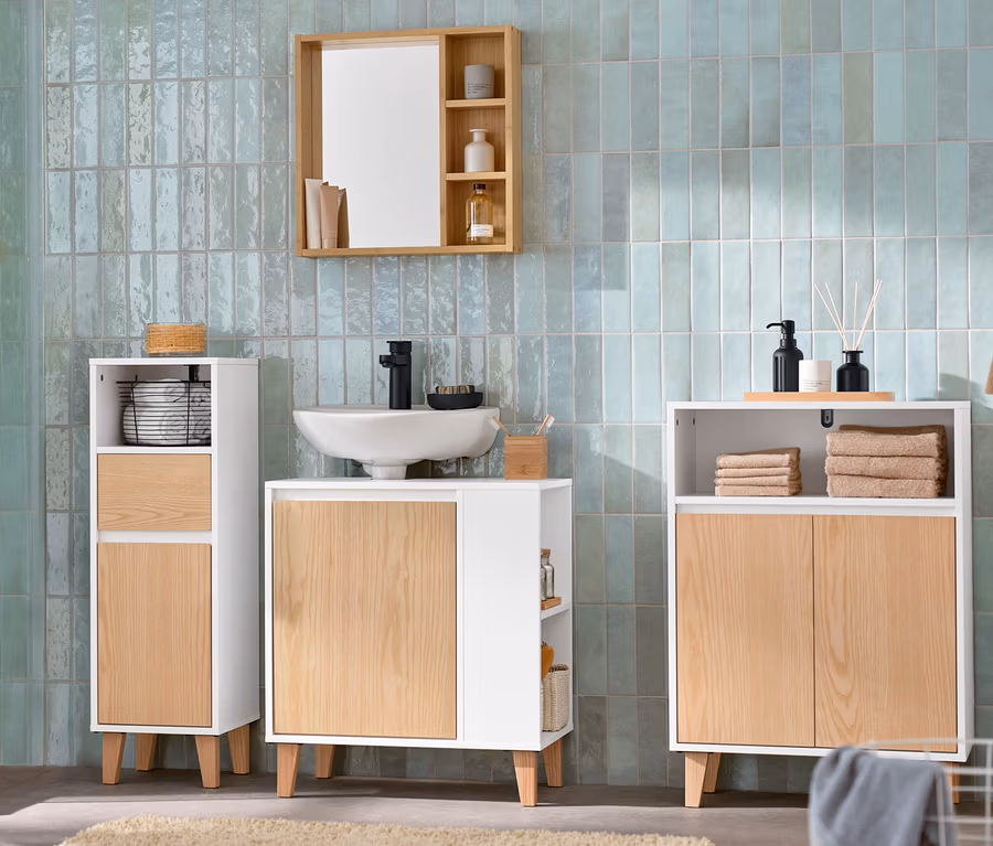 Armoire d’appoint pour salle de bain avec tiroir et porte, étroite