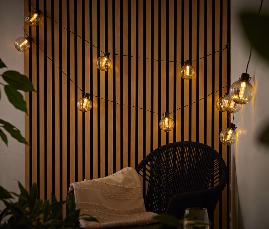 Guirlande lumineuse solaire, boules rainurées