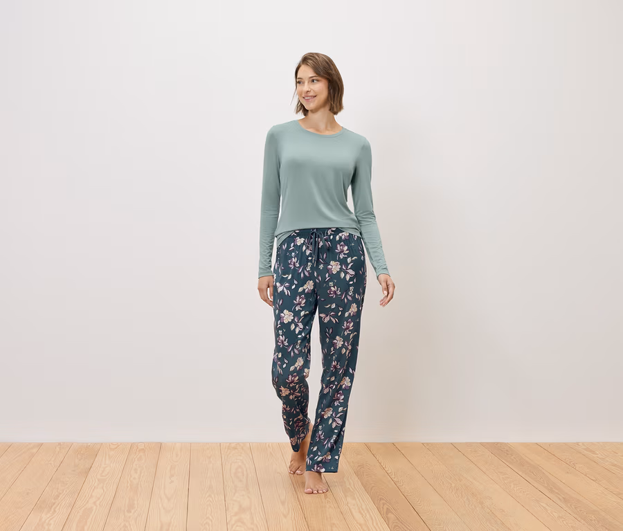 Pyjama avec pantalon tissé, pétrole