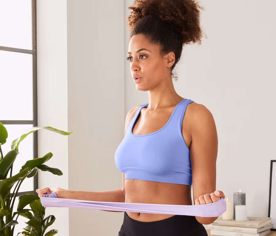 - Maintien optimal grâce aux différentes zones tricotées, au large bord sous la poitrine et aux bretelles larges