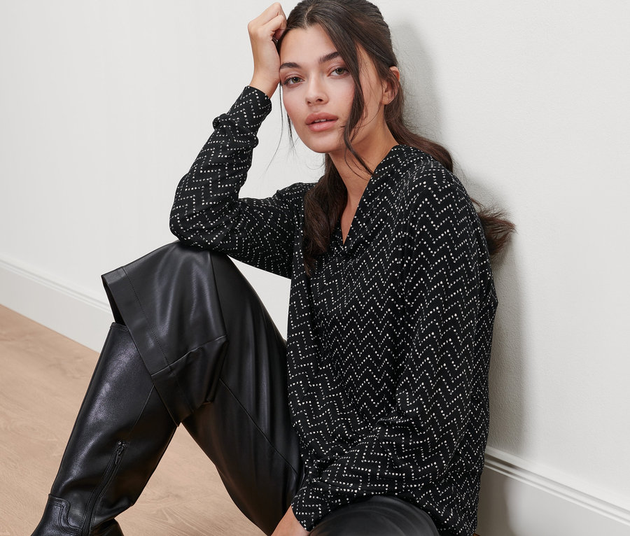 T-shirt manches longues avec encolure en V, imprimé intégral