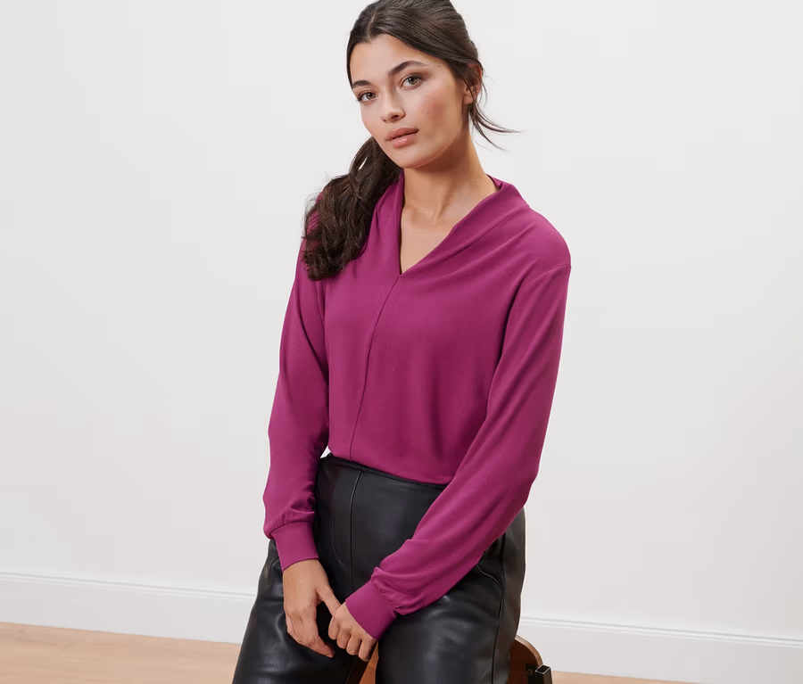 T-shirt manches longues avec encolure en V, framboise