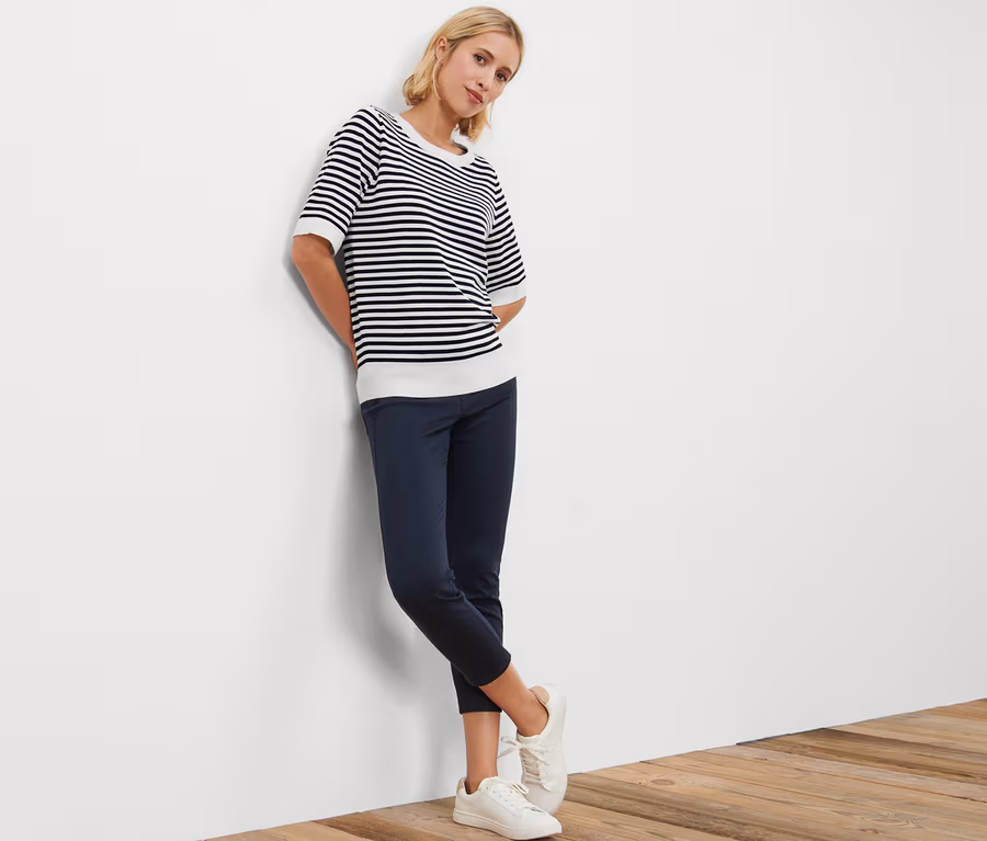 • Ce pull en maille fine contient des fibres issues de bois durable.