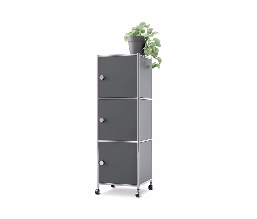 Caisson en métal à roulettes « CN3 » avec 3 portes, gris