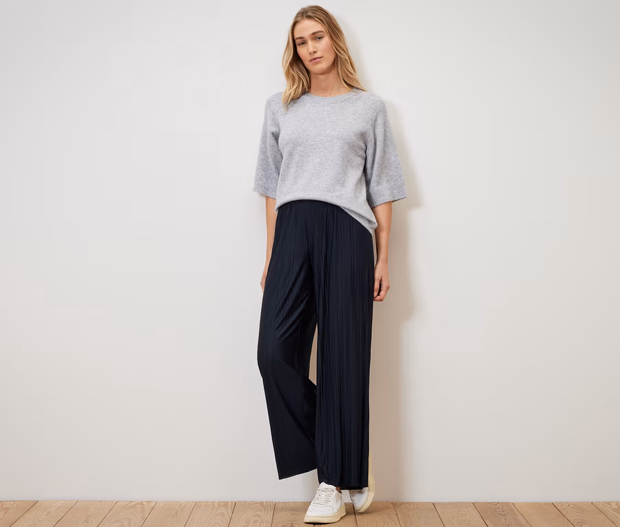 Pantalon plissé, bleu foncé