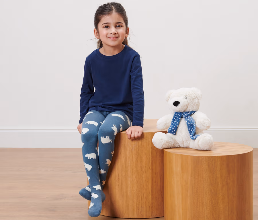 - 1x bleu moyen avec motif tricoté ours polaires, 1x bleu foncé