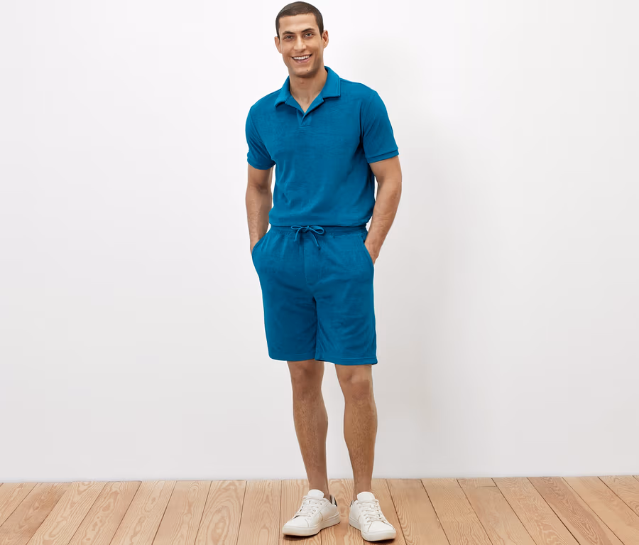 Short en tissu éponge, pétrole