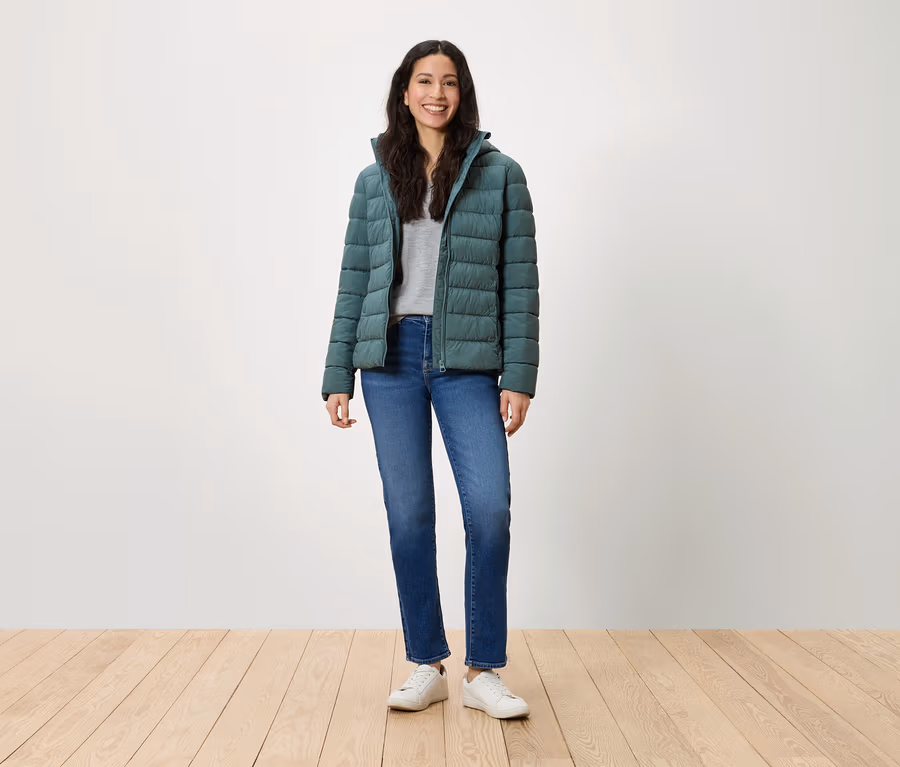 Veste matelassée à capuche, turquoise