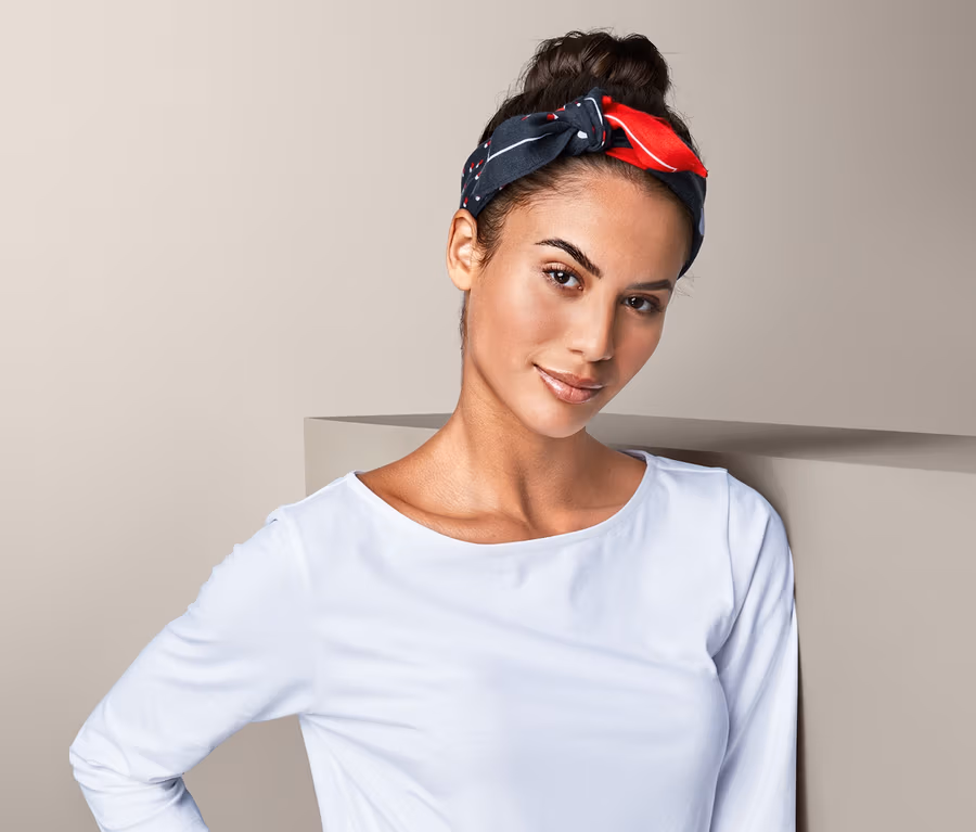 - Différentes façons de le porter : comme écharpe, comme foulard pour les cheveux, comme accessoire moderne pour passant de ceinture ou comme sac