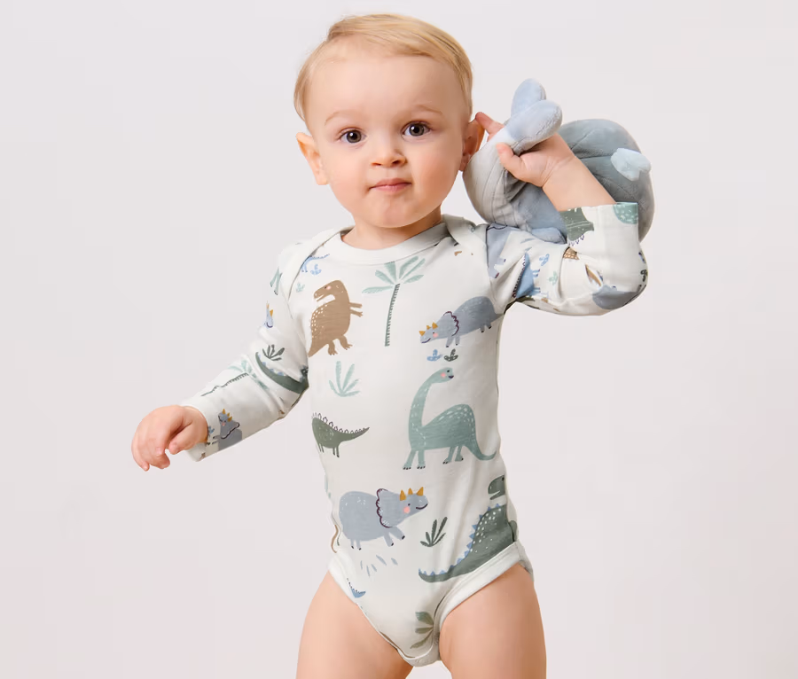 3 bodys manches longues, dinosaure