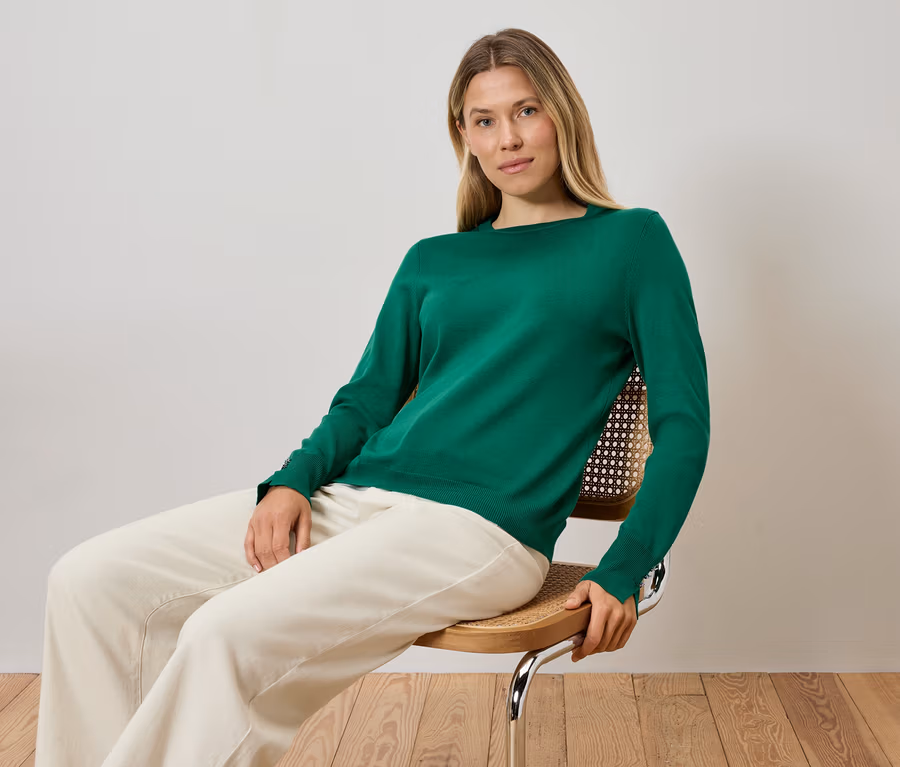 - Bords côtelés élastiques à l’encolure, aux poignets et à la base