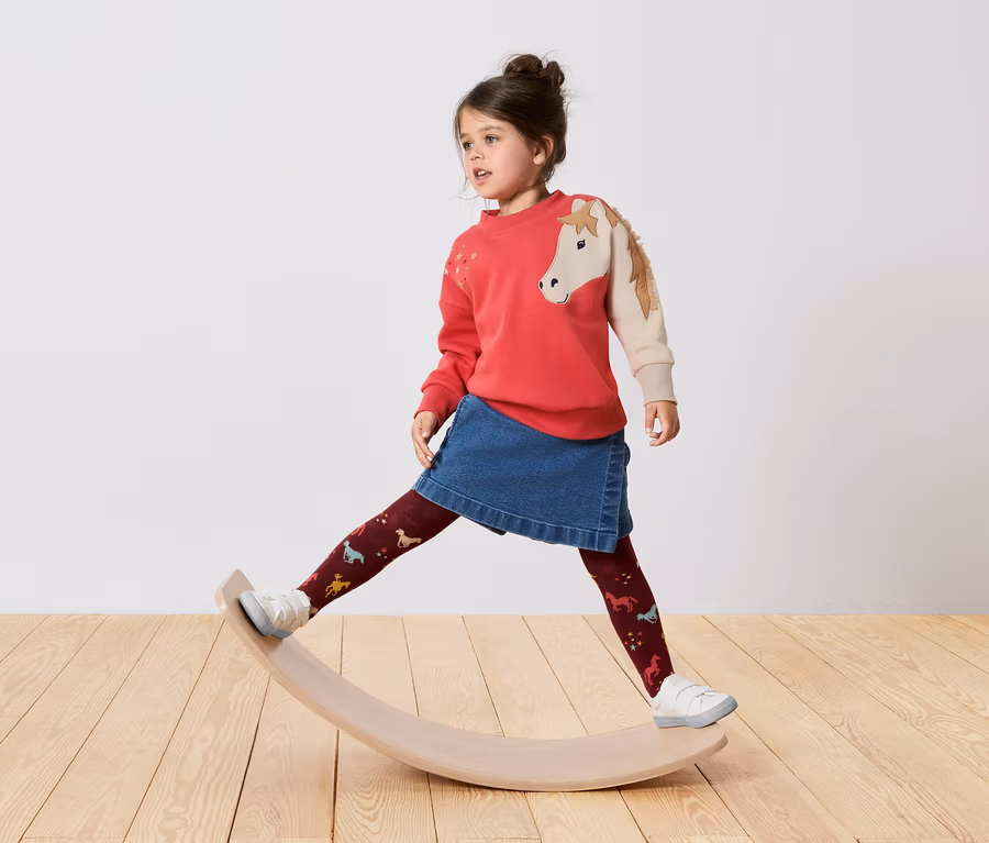 Rouge clair avec application de cheval blanc crème et imprimé d’étoiles multicolores aux étoiles