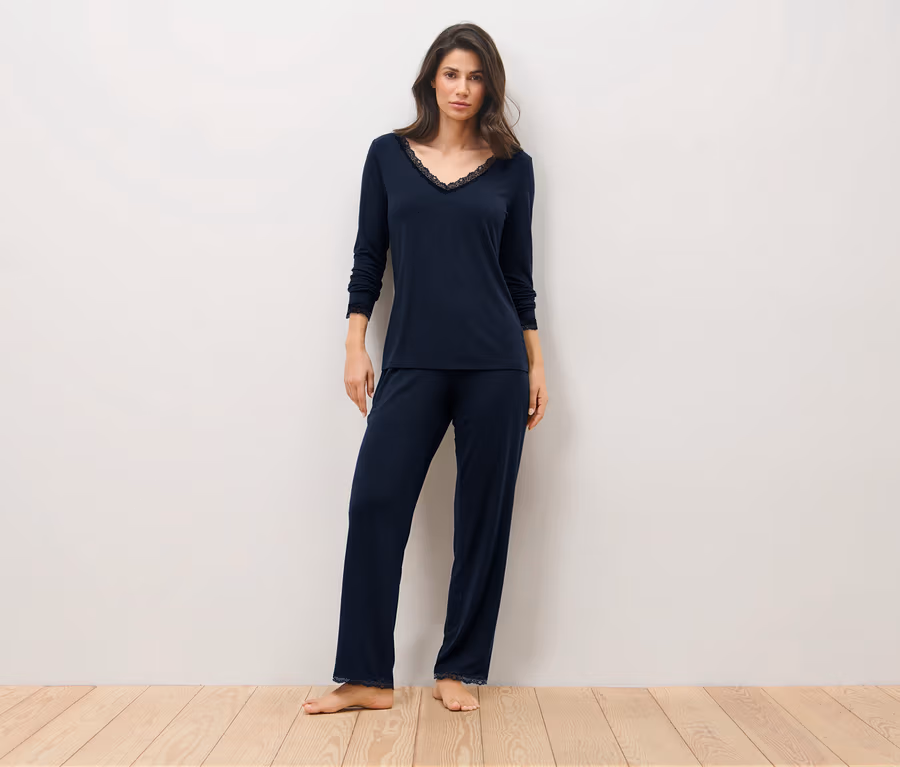 Ensemble pyjama avec dentelle, bleu foncé