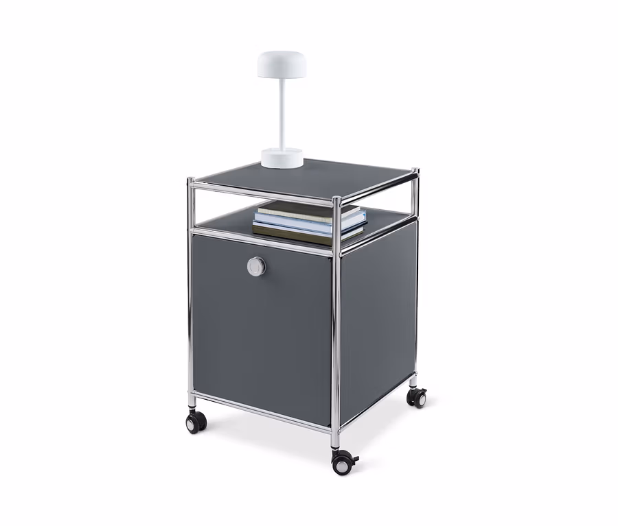 - Caisson à roulettes avec structure en métal chromé et poignées bouton