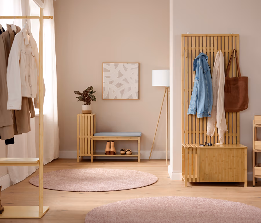 Garde-robe avec banc, aspect lamellé