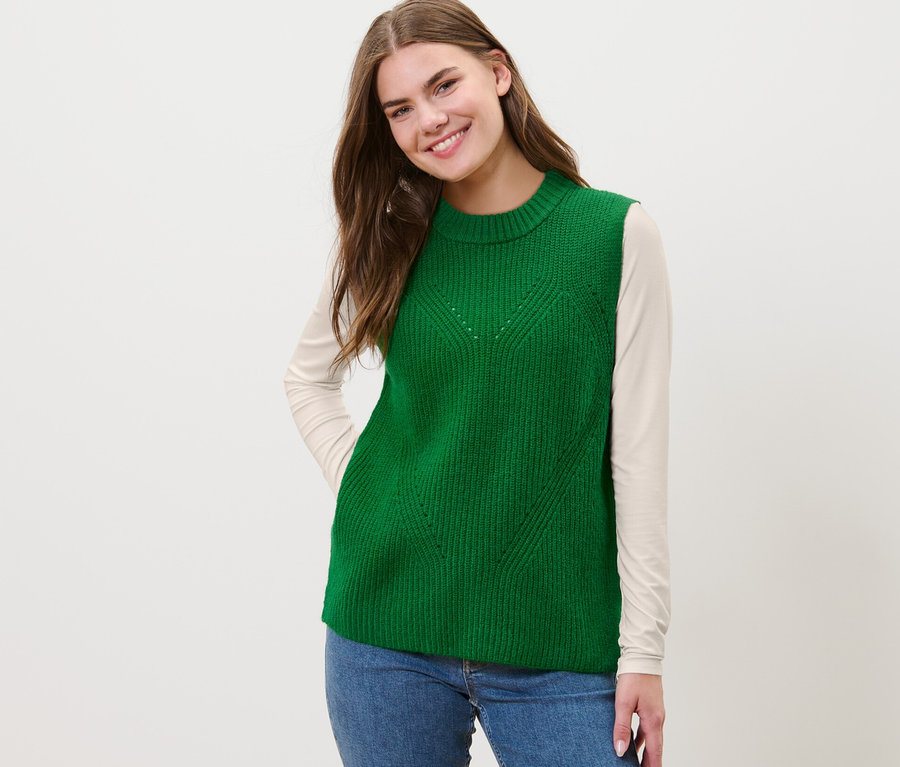 - Ce pull sans manches contient 5% de laine certifiée RWS, certification délivrée par CU 809415