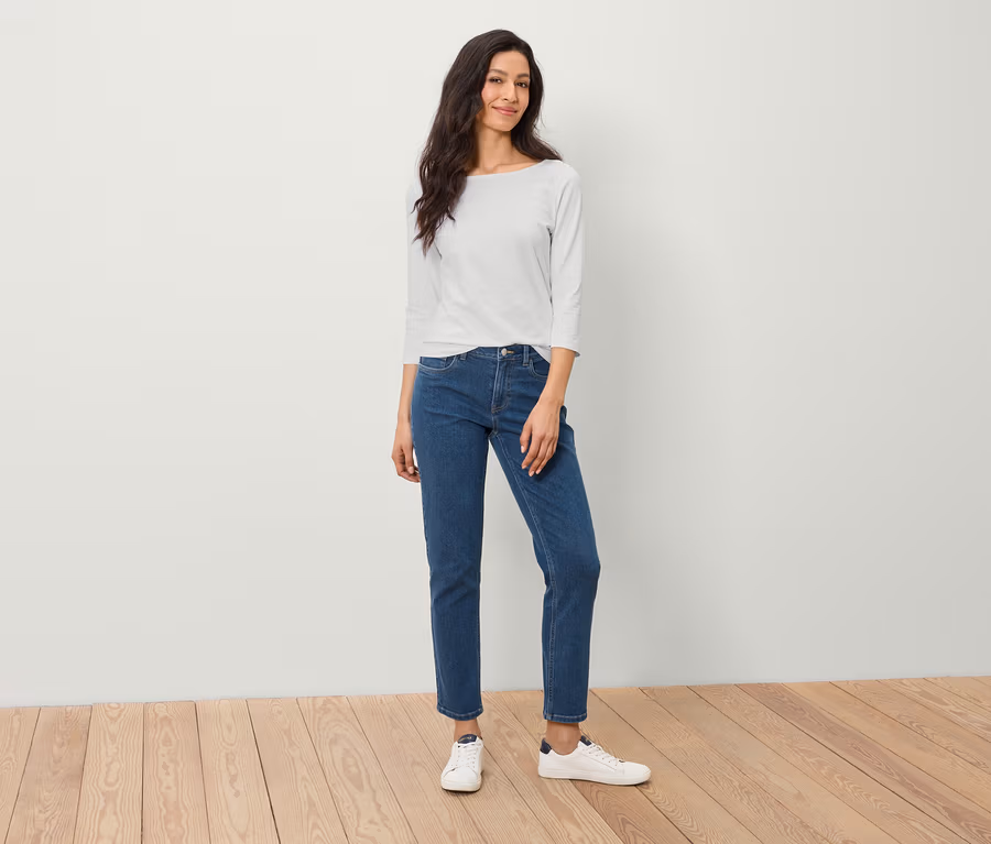 • Coupe standard | Jambes droites | Taille mi-haute | Longueur cheville