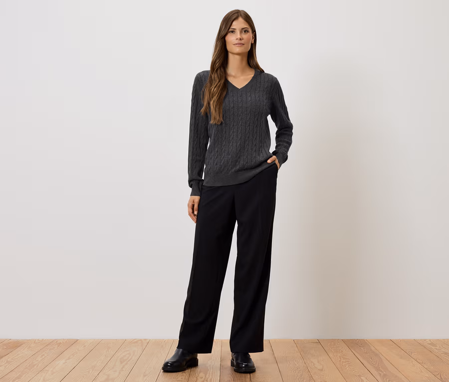 - Bords côtelés élastiques à l’encolure, aux poignets et à la base