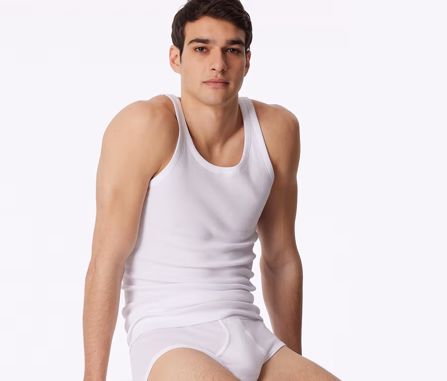 2 Maillots de corps SCHIESSER en maille côtelée fine, blanc