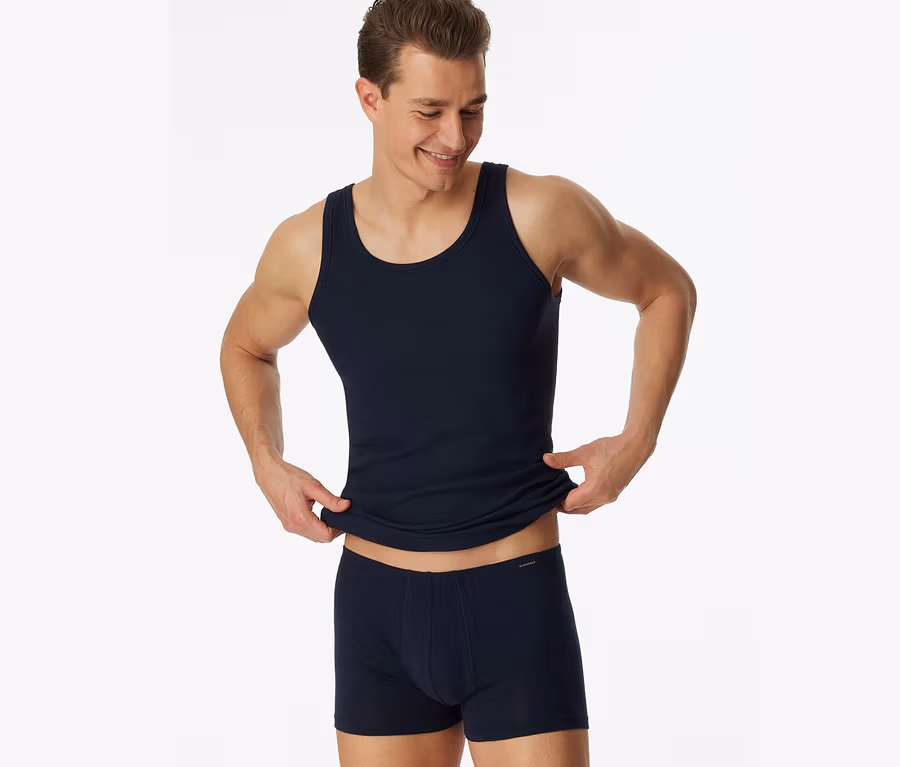 2 Maillots de corps SCHIESSER en maille côtelée fine, bleu