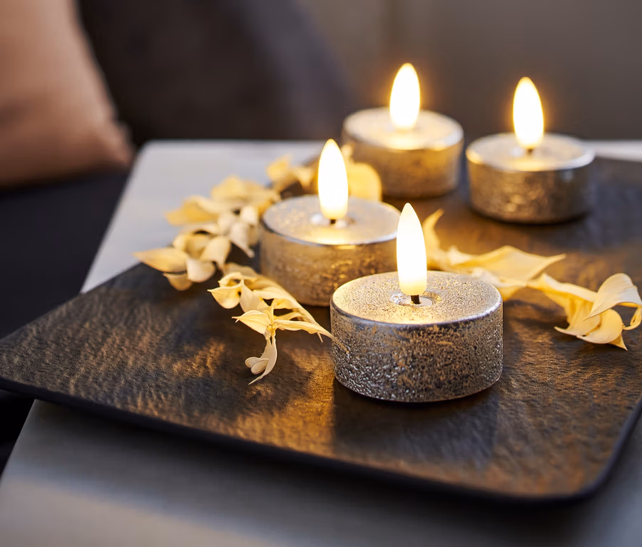 4 lampes à thé LED en cire, argentées