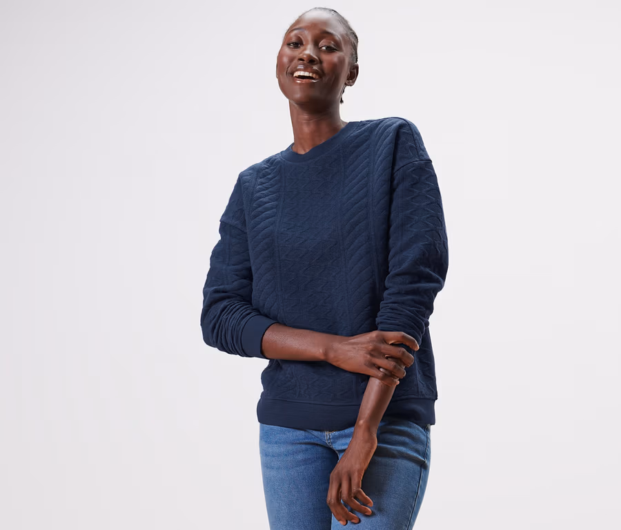 - Bords côtelés élastiques à l’encolure, aux poignets et à la base