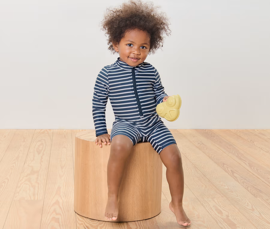 Combinaison pour bébé avec indice de protection UV 80, à rayures