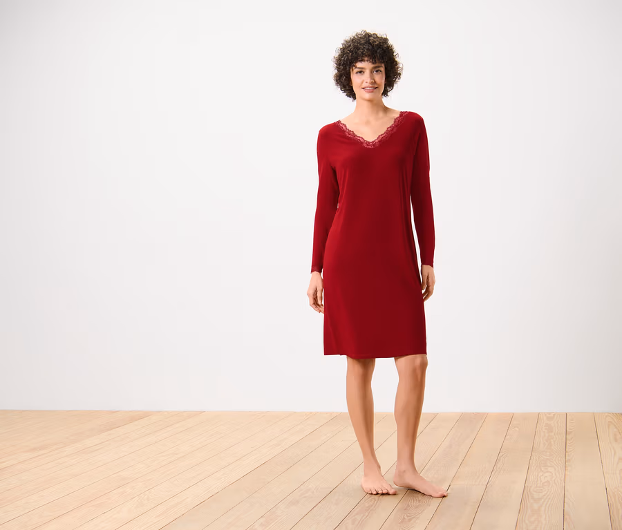 - Encolure en V et extrémités des manches avec parementure en dentelle délicate