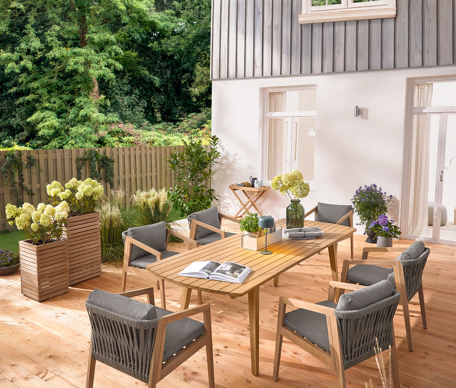 • En bois d’acacia certifiĂ© FSCÂź, aspect teck clair, huilĂ©