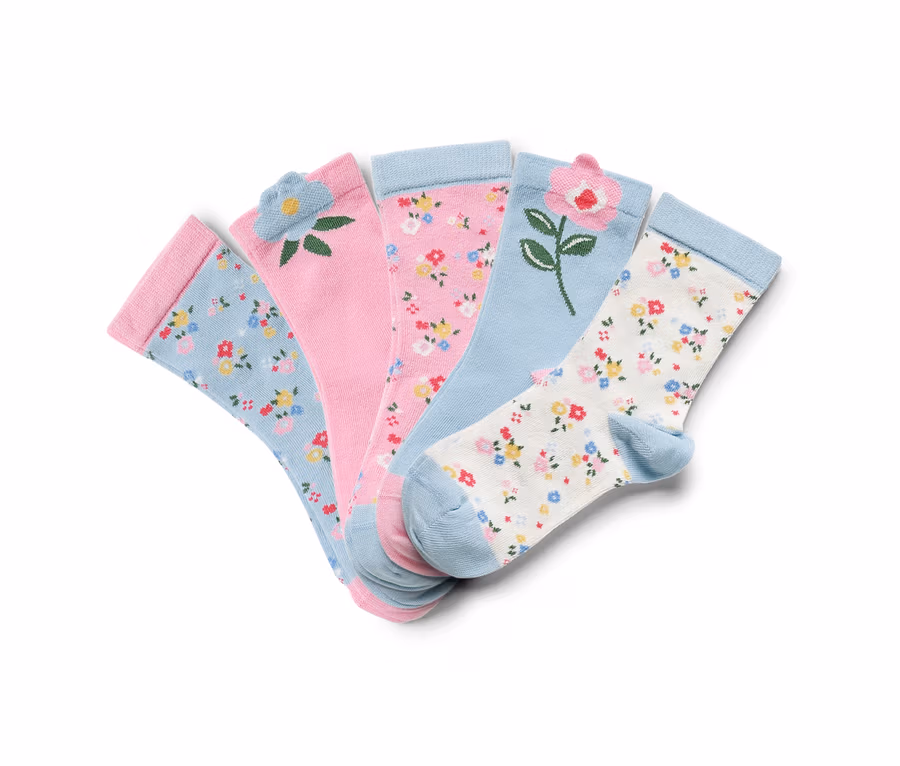 3 x motif intégral fleuri multicolore, 1 x rose avec fleur 3D bleue, 1 x bleu ciel avec fleur 3D rose