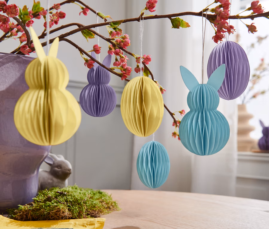 - Ces pendentifs de Pâques en papier permettent de réduire la quantité de déchets.