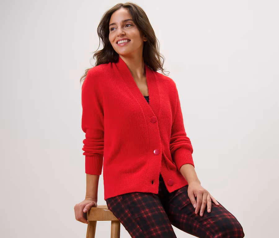 • Patte de boutonnage devant dans le style d’un cardigan classique