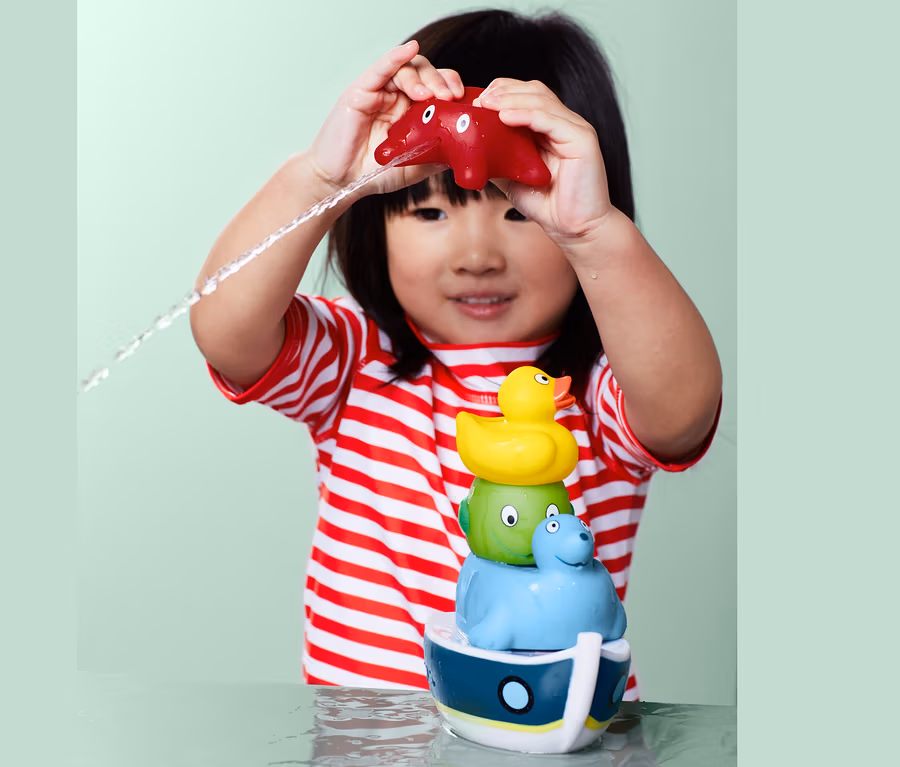 Tous à l'eau ! Attention, en lâchant ces animaux à la plage, à la piscine ou dans votre jardin, c'est éclaboussures et rigolades assurées ! Il suffit de les remplir d'eau et d'appuyer dessus pour que le jet sorte. Le lot comporte cinq jouets colorés : un canard, un poisson, un phoque et un bateau qui se rangent facilement puisqu'ils sont empilables ou peuvent être glissé dans la pochette de rangement incluse.