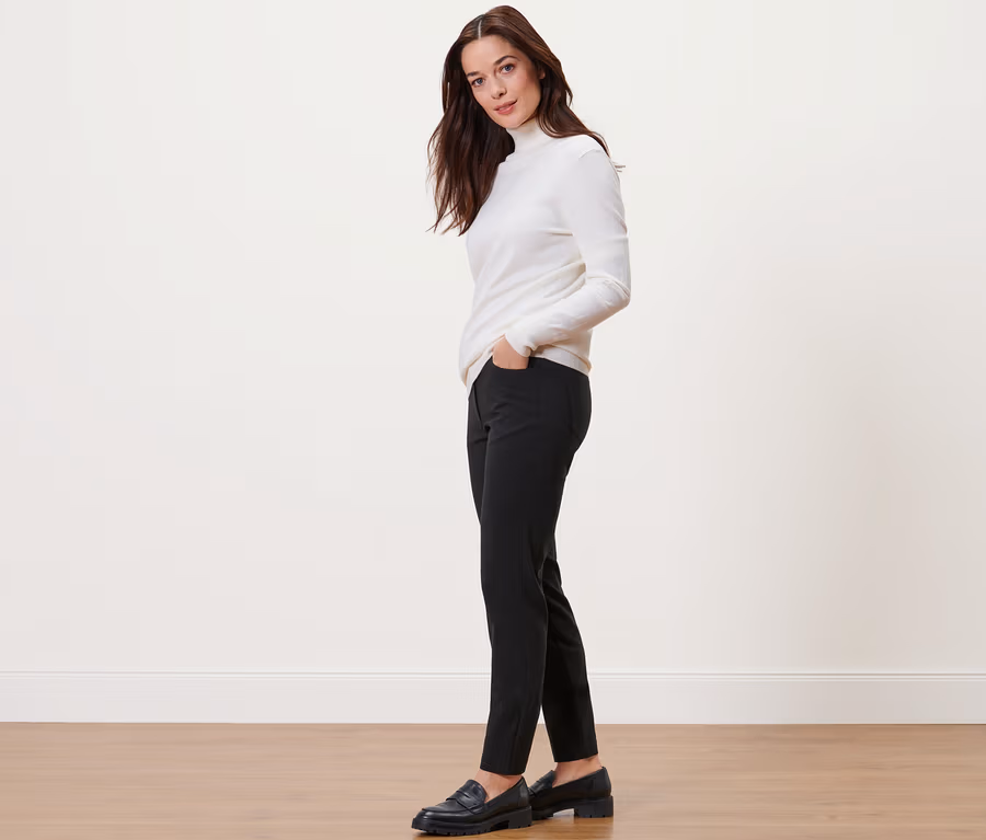 - Taille avec passants de ceinture, bouton et fermeture zippée