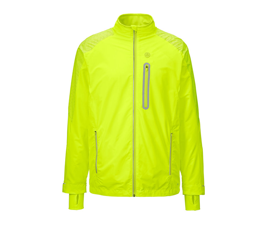 Les empiècements élastiques sur les coudes, sous les bras et dans le dos assurent une liberté de mouvement optimale. Avec les fermetures velcro sur les bras et un cordon coulissant au niveau de l’ourlet, la veste de sport peut être ajustée de manière individuelle. La fermeture éclair sur le devant dispose également d’un passepoil réfléchissant et d’une protection du mention tout en haut. Outre, les deux poches fendues à fermeture éclair sur les côtés, la veste est équipée d’une poche sur la poitrine – elle comporte une fermeture éclair et une ouverture pour faire passer le câble des écouteurs. Les revers des manches élastiques comportent un trou pour le pouce.