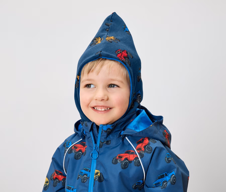 - 1 côté bleu foncé avec imprimé intégral multicolore, motif camion, 1 côté bleu