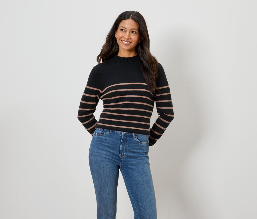 Pull en tricot à col montant, noir à rayures marron clair