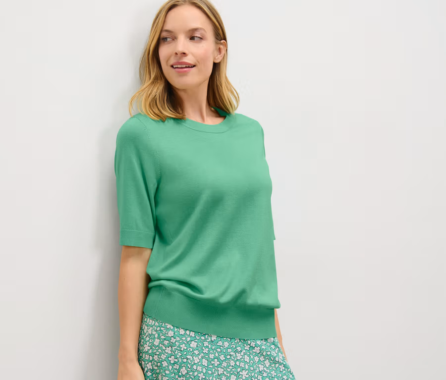 - Ce pull en maille fine contient des fibres issues de bois durable.