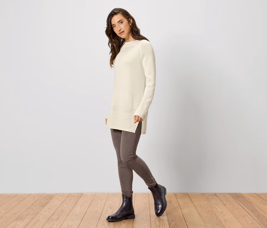 - Encolure ronde montante avec bords côtelés