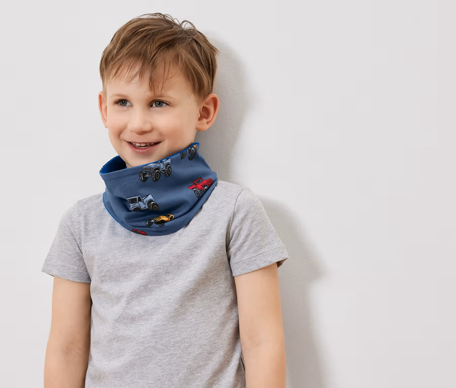 Foulard pour enfant avec bande auto-agrippante, motif camions