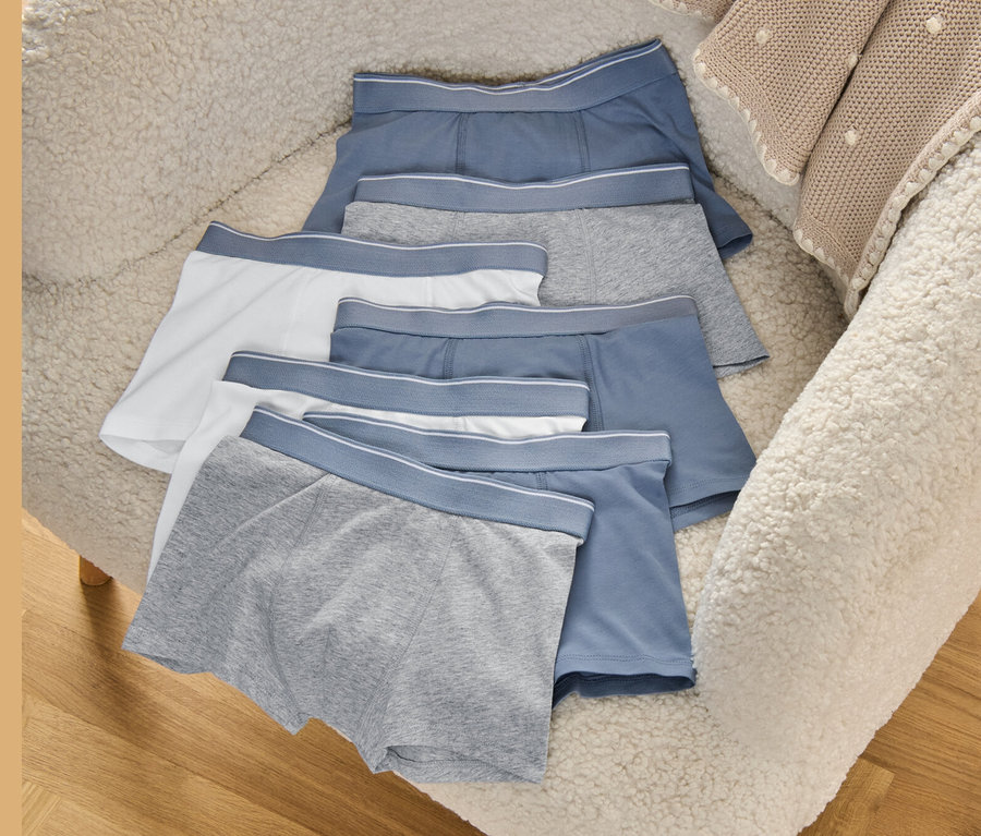 - 2 x gris chiné, 2 x blanc, 3 x bleu pigeon