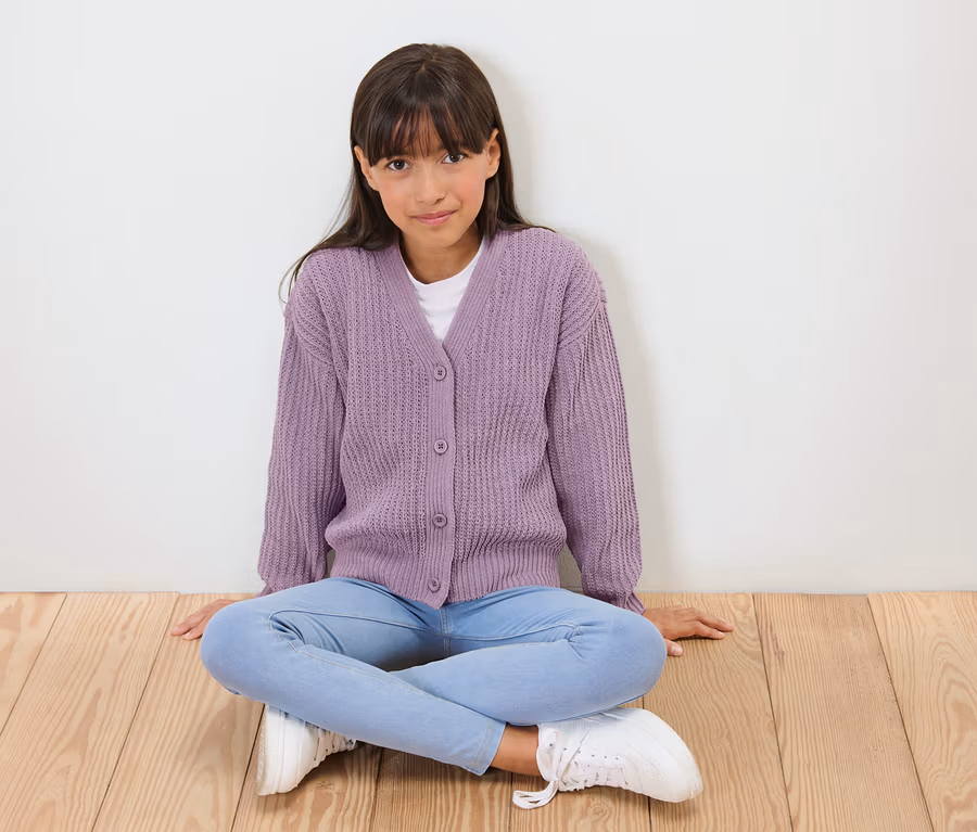 Veste tricotée en chenille pour enfant, lavande