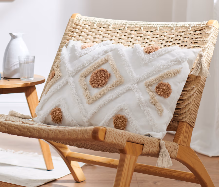 - Coussin décoratif avec finitions touffetées