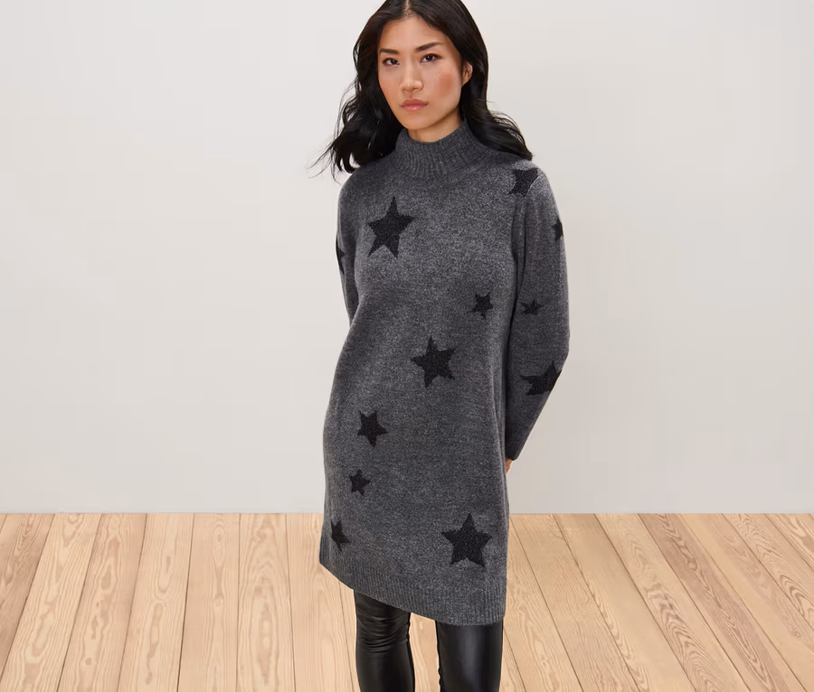 - Gris foncé chiné avec étoiles noires brillantes